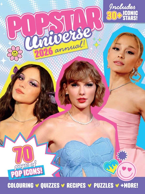 Read all about your favourite popstars, including Taylor Swift, Ariana Grande, Olivia Rodrigo, Beyonce and lots more. Packed with boredom-busting puzzles, quizzes to test your knowledge of your favourite superstars, cute fashion design, fun colouring, word searches and doodle pages, Popstar Universe Annual 2026 is the perfect gift for any young pop-lover, fashionista or Taylor Swift superfan!